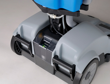 Lavora a batteria o a corrente con 15mt di cavo a bordo macchina. Nonostante la dimensione – 10lt di serbatoio e 46cm di pista di lavoro, la macchina è leggera e maneggevole, progettata per lavare grandi superfici di pavimento duro da 200 a 2000mq.