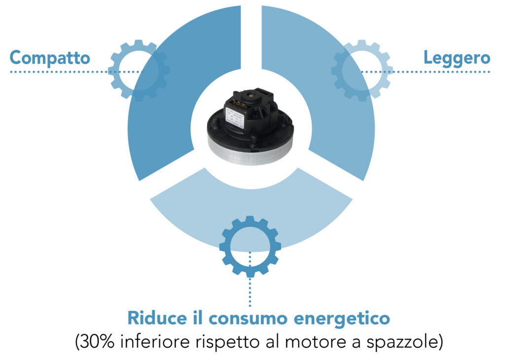 Grazie al nuovo motore digitale brushless Rotafil, siamo riusciti a ridurre il consumo di circa il 50% a parità di prestazioni rispetto ai classici motori a spazzole, permettendo così di raggiungere 60 minuti di lavoro continuo.